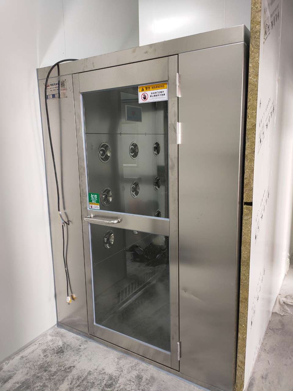 风淋室的吹淋功能通过高速气流(一般风速可达25米/秒左右)吹落附着在物体表面的微生物。这种高速气流能够迅速剥离并带走污染物,使其进入回风系统并经过再次过滤后排出。