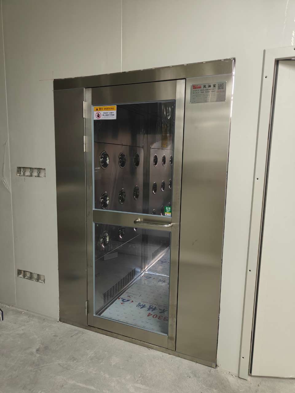 青岛双人双吹不锈钢风淋室是洁净室入口的关键净化设备,专为高 效 清 除人员或物料表面污染物而设计,广泛应用于电子制造、生物医药、食品加工等高洁净度要求的行业。其核心结构采用优质不锈钢材质,兼具高强度、耐腐蚀、易清洁等特性,尤其适合潮湿、高腐蚀或无菌环境。设备通过双侧对称分布的多个高 效喷嘴,以≥20m/s的高速洁净气流(经初效和HEPA/ULPA双重过滤,过滤效率≥99.97%)对双人进行吹淋,覆盖头部、躯干及脚部,显著减少尘埃、微生物等污染物带入洁净区的风险。相较于传统单人风淋室,双人设计大幅提 升通行效率,减少人员等待时间,同时通过智能联锁系统(如红外感应启停、自动门禁)确保吹淋过程中洁净区与外部环境严格隔离,避免交叉污染。
